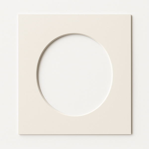 1 sztuka RAMKA PASSE-PARTOUT ze skośnym otworem w kształcie koła, przekrój biały.