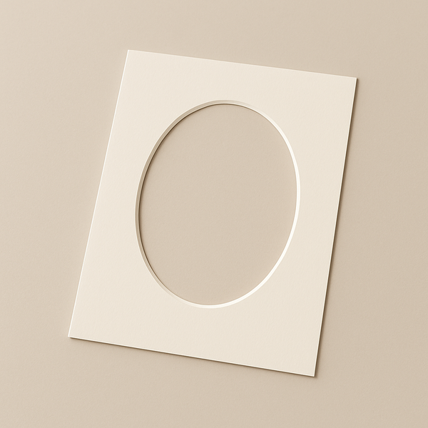 - Ramka Passe-partout ze skośnym otworem w kształcie owalu, przekrój biały.